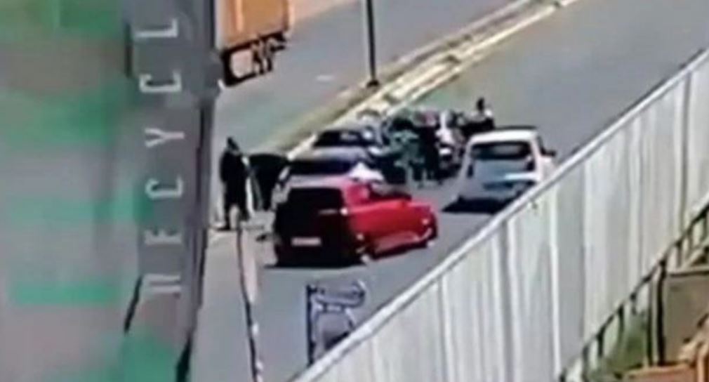 Την ίδια ώρα άλλο όχημα σταματά ακριβώς πίσω του και τον εγκλωβίζουν. Μέσα σε λίγα δευτερόλεπτα άλλα δύο αυτοκίνητα σταματούν στο σημείο.