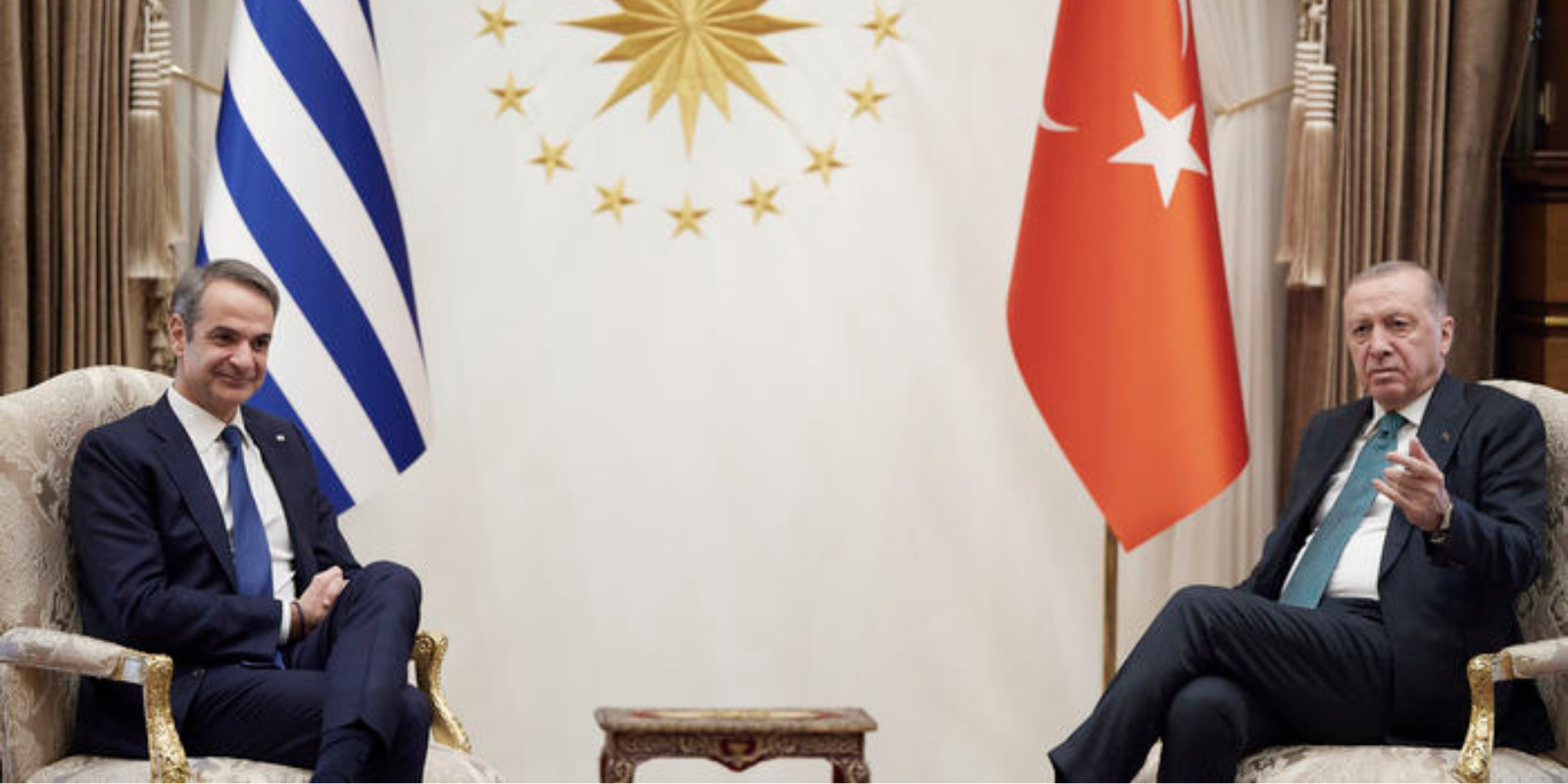 Ολοκληρώθηκε λίγο μετά τις 17:00 η συνάντηση του πρωθυπουργού Κυριάκου Μητσοτάκη με τον Πρόεδρο της Τουρκίας Ρετζέπ Ταγίπ Ερντογάν, στην Άγκυρα με τις εργασίες του Ανώτατου Συμβουλίου Ασφαλείας να ακολουθούν στη συνέχεια.