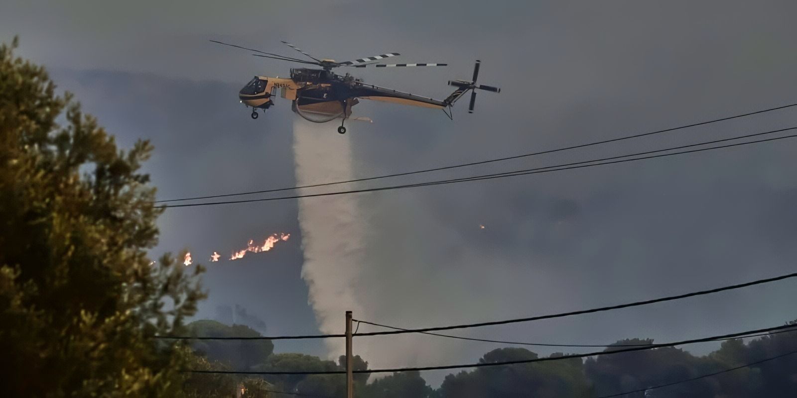 Από αέρος συνδράμουν πέντε αεροσκάφη και πέντε ελικόπτερα, εκ των οποίων το ένα χρησιμοποιείται για τον συντονισμό των εναέριων δυνάμεων. Στην επιχείρηση κατάσβεσης συμμετέχουν επίσης υδροφόρες της Περιφέρειας Αττικής.