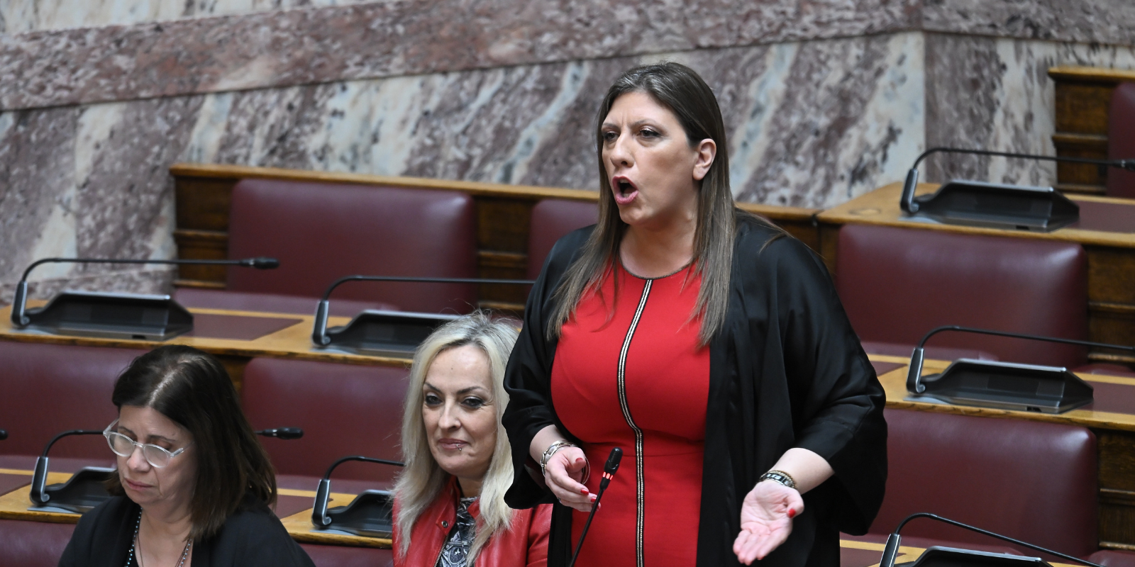 Η πρόεδρος της Πλεύσης Ελευθερίας, σε ιδιαίτερα υψηλούς τόνους, απευθύνθηκε στην υπουργό λέγοντας «Δεν ντρέπεστε να λέτε ότι το κάνουμε για το ακροατήριο; Είστε βουλευτές φαντάσματα, βιδωμένοι στις καρέκλες σας, που δεν θέλετε να τις χάσετε. Όπως και άλλοι μεταδοτική νόσος και σίγουρα ανίατη». Στο σημείο εκείνο έστρεψε το βλέμμα της προς την ανεξάρτητη πλέον βουλευτή Ελένη Καραγεωργοπούλου, η οποία έχει αποχωρήσει από την Πλεύση Ελευθερίας.