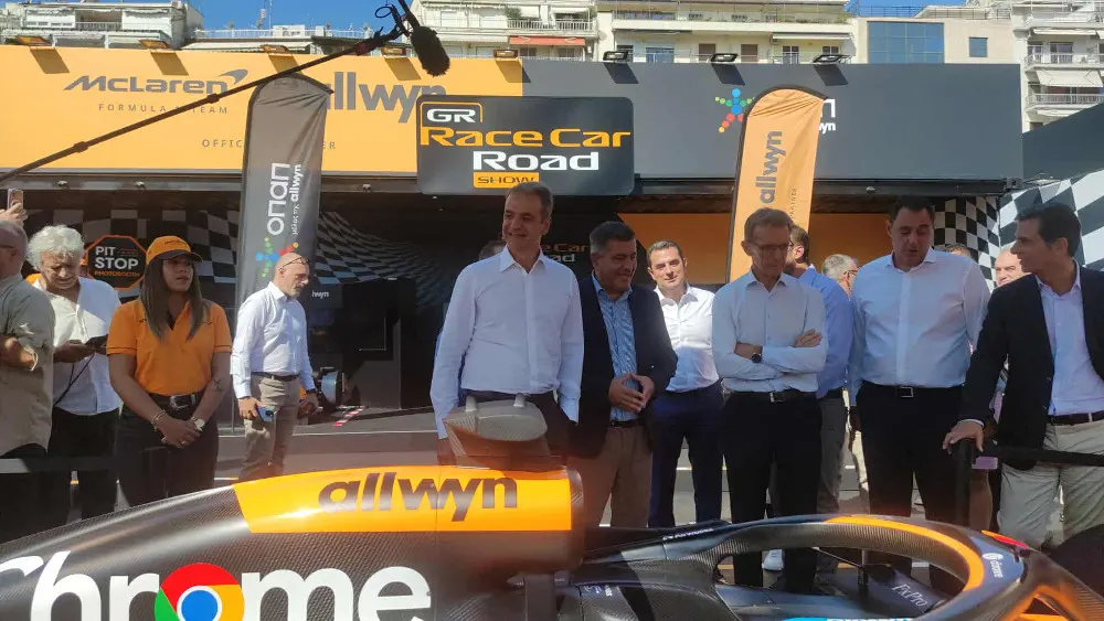 Το περίπτερο της MacLaren ήταν ο πρώτος σταθμός της περιοδείας του πρωθυπουργού. Στο stand εκτίθεται το μονοθέσιο Formula 1 Team που θα ταξιδέψει σε 5 πόλεις στη χώρα μας και θα δώσει την ευκαιρία στους φίλους του μηχανοκίνητου αθλητισμού και ιδίως της McLaren όχι απλώς να το δουν από κοντά αλλά και να φωτογραφηθούν μαζί του. «Εγώ αν μπω εδώ μέσα δεν θα ξαναβγώ, θα σφηνώσω», είπε με αυτοσαρκασμό ο κ. Μητσοτάκης, μένοντας εντυπωσιασμένος από το μονοθέσιο.